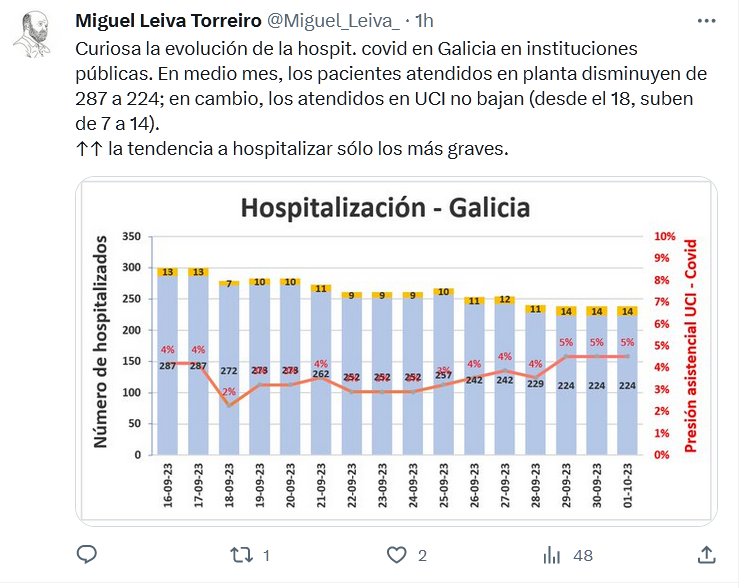ESPAÑA APESTA Curiosa la evolución de la hospitalizaciön covid en Galicia en instituciones públicas: la tendencia a hospitalizar sólo los más graves Posted on octubre 1, 2023 por coronado