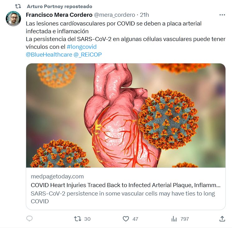 Las lesiones cardíovasculares por COVID se deben a placa arterial infectada e inflamación La persistencia del SARS-CoV-2 en algunas células vasculares puede tener vínculos con el #longcovid Posted on octubre 1, 2023 por coronado
