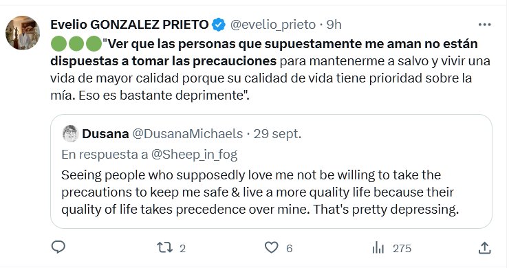 TANTO CUESTA PONERSE UNA MASCARILLA? 🟢🟢🟢»Ver que las personas que supuestamente me aman no están dispuestas a tomar las precauciones para mantenerme a salvo y vivir una vida de mayor calidad porque su calidad de vida tiene prioridad sobre la mía. Eso es bastante deprimente».