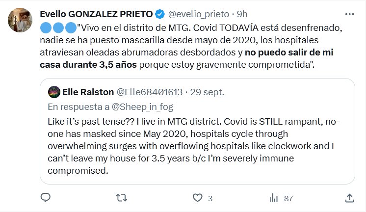 TESTIMONIOS 🔵🔵🔵»Vivo en el distrito de MTG. Covid TODAVÍA está desenfrenado, nadie se ha puesto mascarilla desde mayo de 2020, los hospitales atraviesan oleadas abrumadoras desbordados y no puedo salir de mi casa durante 3,5 años porque estoy gravemente comprometida».