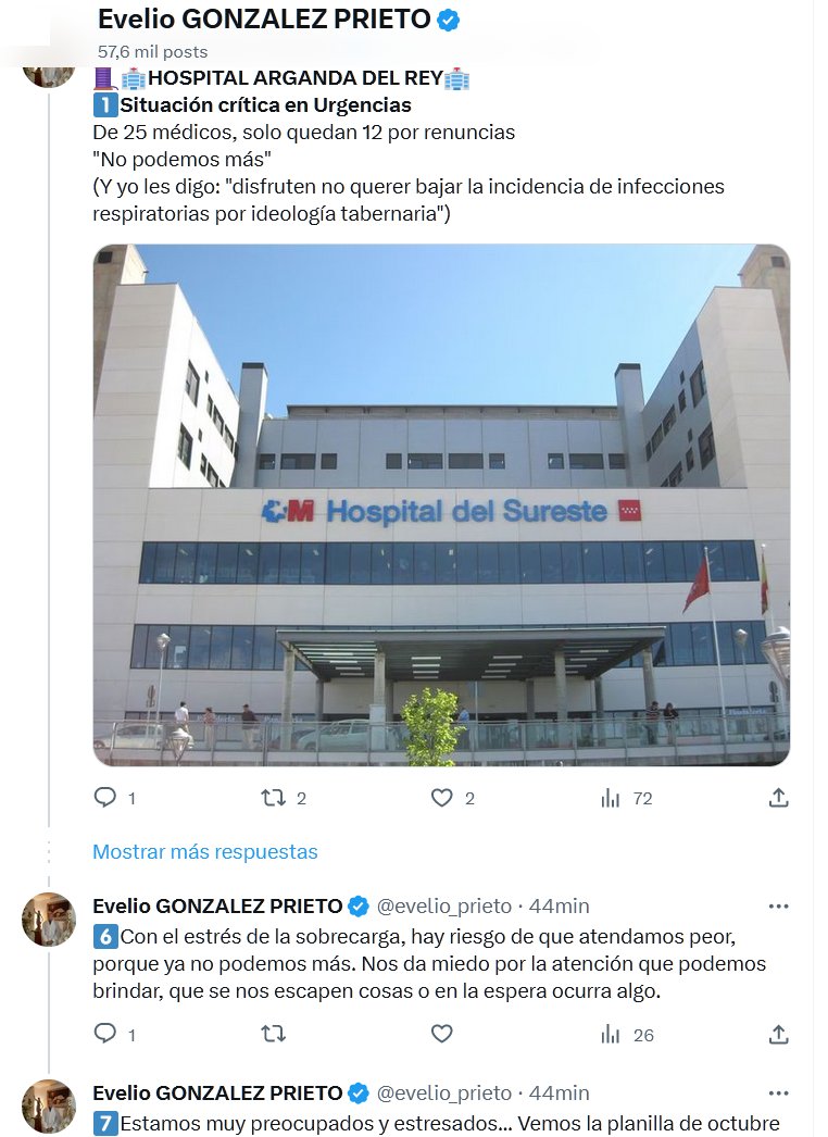 🏥HOSPITAL ARGANDA DEL REY🏥 1⃣Situación crítica en Urgencias De 25 médicos, solo quedan 12 por renuncias «No podemos más» (Y yo les digo: «disfruten no querer bajar la incidencia de infecciones respiratorias por ideología tabernaria»)