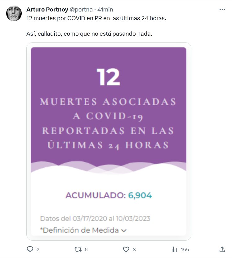 12 muertes por COVID en PR (PUERTO RICO) en las últimas 24 horas. Así, calladito, como que no está pasando nada. Posted on octubre 4, 2023 por coronado