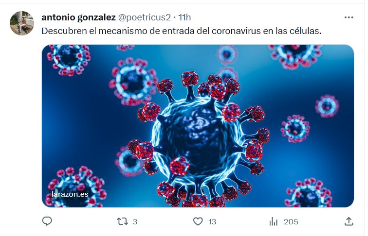 Descubren el mecanismo de entrada del coronavirus en las células. Posted on octubre 5, 2023 por coronado https://www.larazon.es/sociedad/descubren-mecanismo-entrada-coronavirus-celulas_20231004651d8ce0b2ab570001f87ea8.html