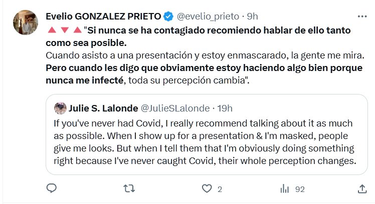 HAY VIDA INTELIGENTE EN EL PLANETA! 🔺🔻🔺»Si nunca se ha contagiado recomiendo hablar de ello tanto como sea posible. Cuando asisto a una presentación y estoy enmascarado, la gente me mira. Pero cuando les digo que obviamente estoy haciendo algo bien porque nunca me infecté, toda su percepción cambia».