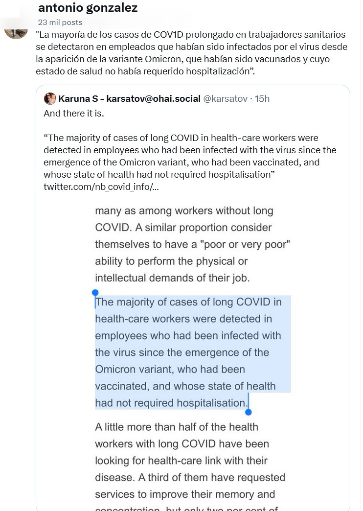 «La mayoría de los casos de COV1D prolongado en trabajadores sanitarios se detectaron en empleados que habían sido infectados por el virus desde la aparición de la variante Omicron, que habían sido vacunados y cuyo estado de salud no había requerido hospitalización”.