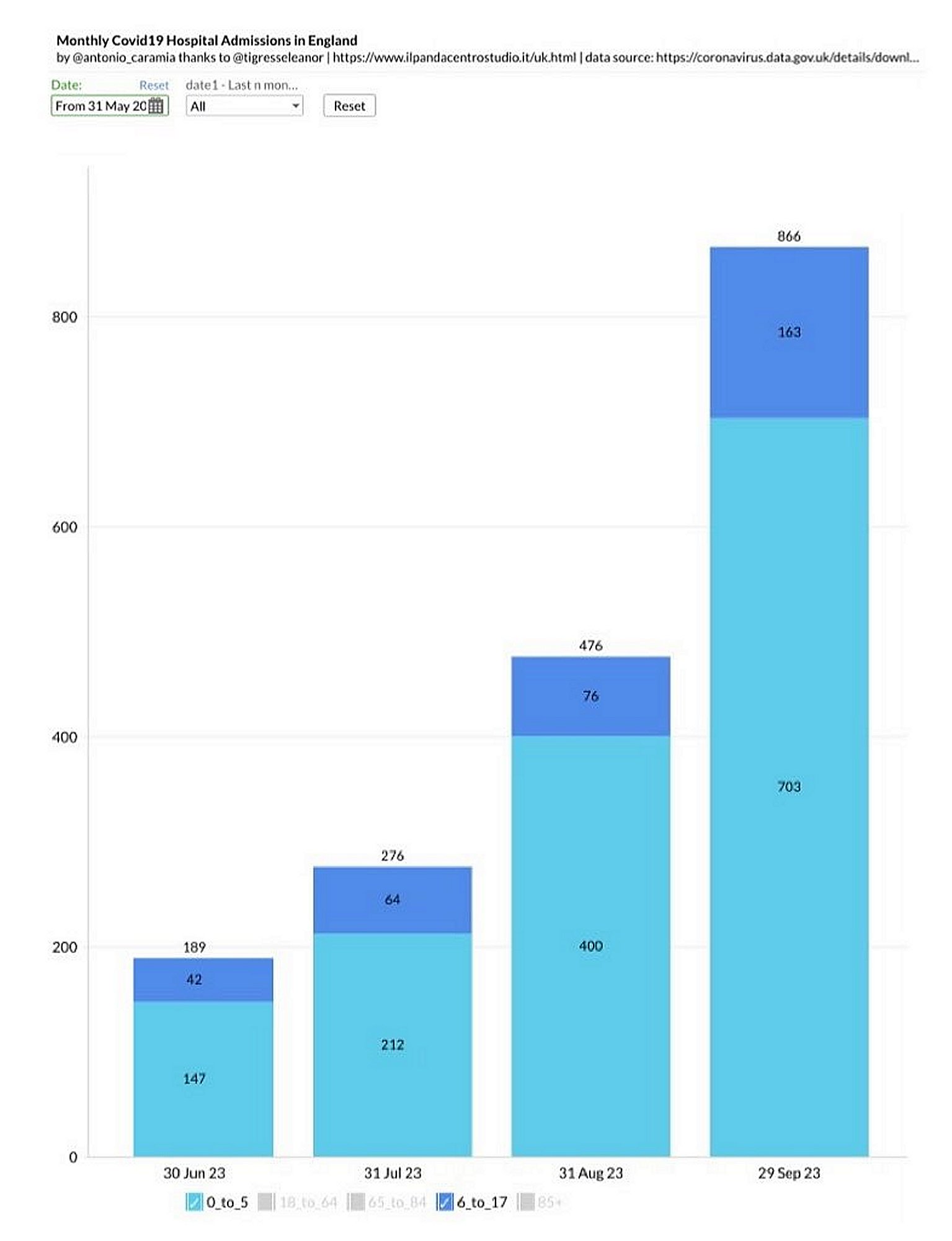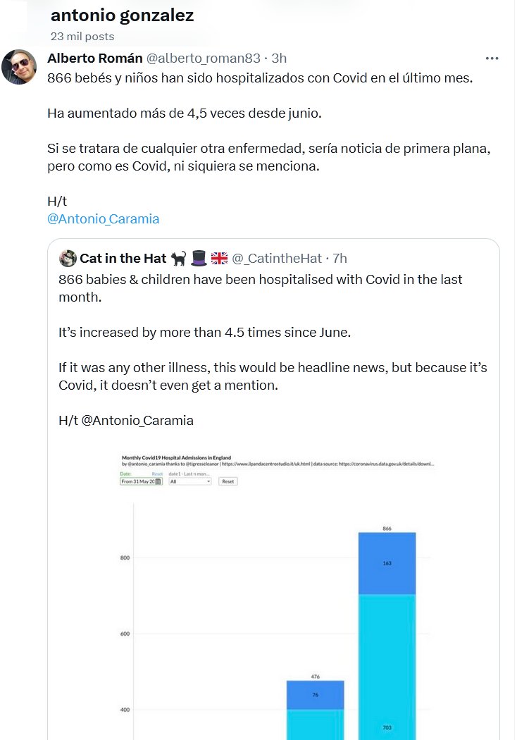 LESA HUMANIDAD 866 bebés y niños han sido hospitalizados con Covid en el último mes. Ha aumentado más de 4,5 veces desde junio. Si se tratara de cualquier otra enfermedad, sería noticia de primera plana, pero como es Covid, ni siquiera se menciona.