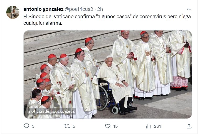 PAPADO EN SILLA DE RUEDAS El Sínodo del Vaticano confirma «algunos casos» de coronavirus pero niega cualquier alarma Posted on octubre 9, 2023 por coronado