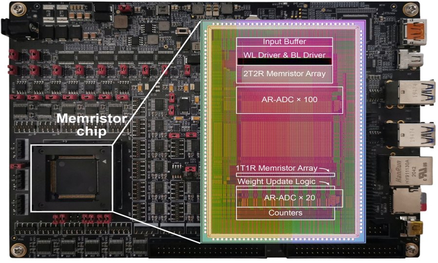 FUTURO MUNDO POSTPANDÉMICO > CHINA: la Universidad de Tsinghua ha desarrollado con éxito el primer chip de computación en memoria memristor totalmente integrado del mundo que admite un aprendizaje eficiente en el chip, que también es energéticamente eficiente