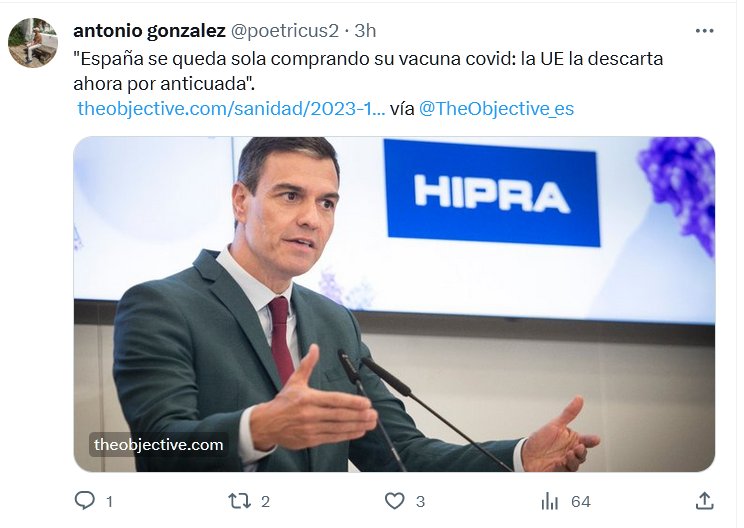 VUESTRAS OFICINAS ESTÁN EN LEPE? «España se queda sola comprando su vacuna covid: la UE la descarta ahora por anticuada». Posted on octubre 11, 2023 por coronado https://theobjective.com/sanidad/2023-10-11/espana-vacuna-covid-ue-hipra/