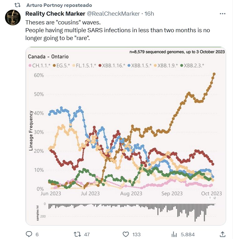 PANDEMIA LIBERADA = SOPA DE VARIANTES Estas son ondas «primas». Las personas que tienen múltiples infecciones por SARS en menos de dos meses ya no serán «raras». Posted on octubre 14, 2023 por coronado