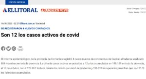 Son 12 los casos activos de covid El informe epidemiológico de la provincia de Corrientes registró 4 casos nuevos de coronavirus de Capital, al haberse analizado 184 muestras en toda la provincia.