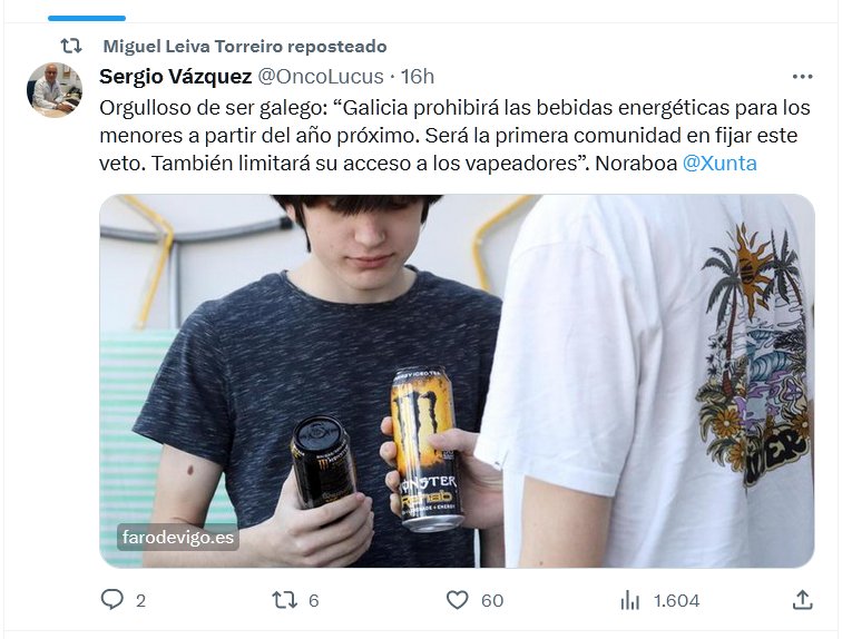 SALUD DE VERDAD! Orgulloso de ser galego: “Galicia prohibirá las bebidas energéticas para los menores a partir del año próximo. Será la primera comunidad en fijar este veto. También limitará su acceso a los vapeadores”. Noraboa @Xunta