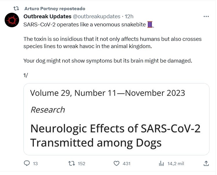 EN INGLÉS El SARS-CoV-2 funciona como una mordedura de serpiente venenosa La toxina es tan insidiosa que no sólo afecta a los humanos sino que también cruza especies para causar estragos en el reino animal. Es posible que su perro no muestre síntomas, pero su cerebro podría estar dañado.