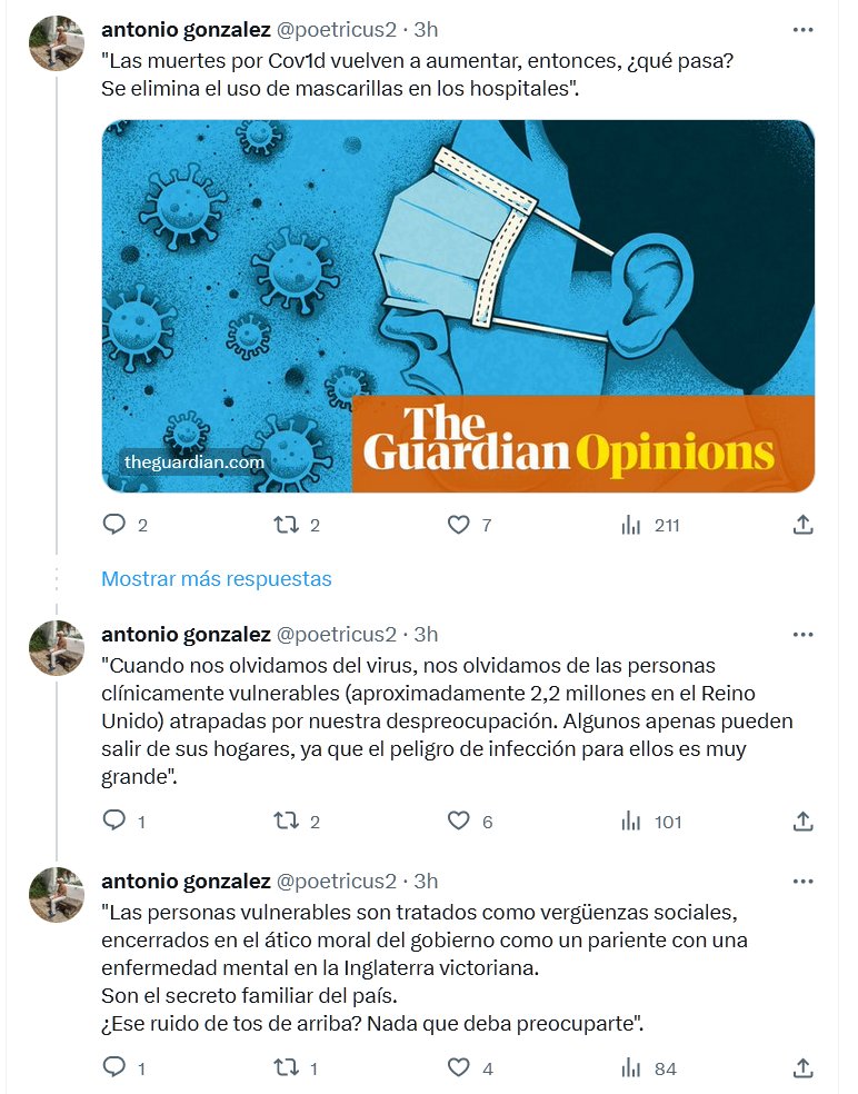 «Las muertes por Covid vuelven a aumentar, entonces, ¿qué pasa? Se elimina el uso de mascarillas en los hospitales» Posted on octubre 16, 2023 por coronado
