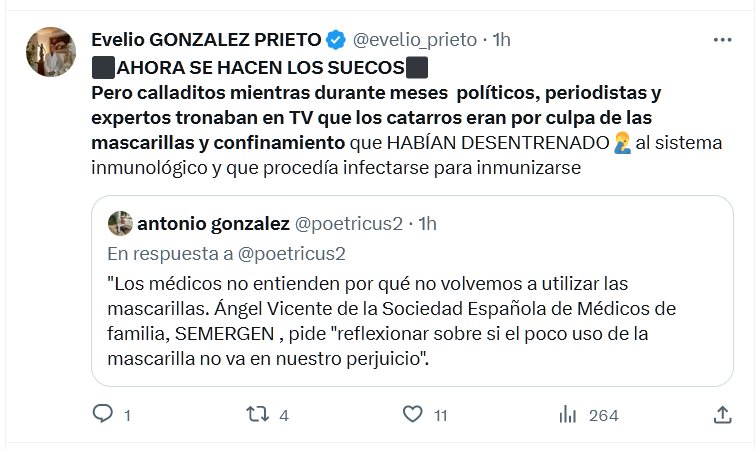 «Los médicos no entienden por qué no volvemos a utilizar las mascarillas. Ángel Vicente de la Sociedad Española de Médicos de familia, SEMERGEN , pide «reflexionar sobre si el poco uso de la mascarilla no va en nuestro perjuicio».