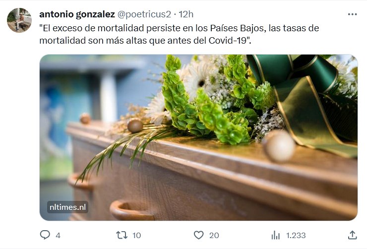 NODIGASQUEESCOVID HACE ESTRAGOS «El exceso de mortalidad persiste en los Países Bajos, las tasas de mortalidad son más altas que antes del Covid-19». Posted on octubre 16, 2023 por coronado https://nltimes.nl/2023/10/15/mortality-excess-persists-netherlands-death-rates-higher-covid-19