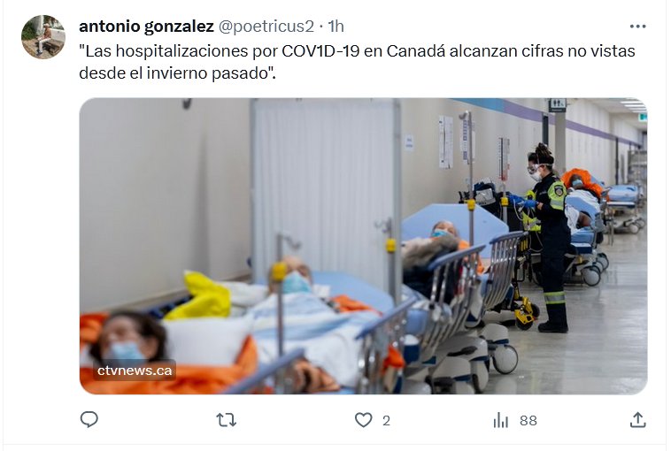 «Las hospitalizaciones por COV1D-19 en Canadá alcanzan cifras no vistas desde el invierno pasado» Posted on octubre 18, 2023 por coronado