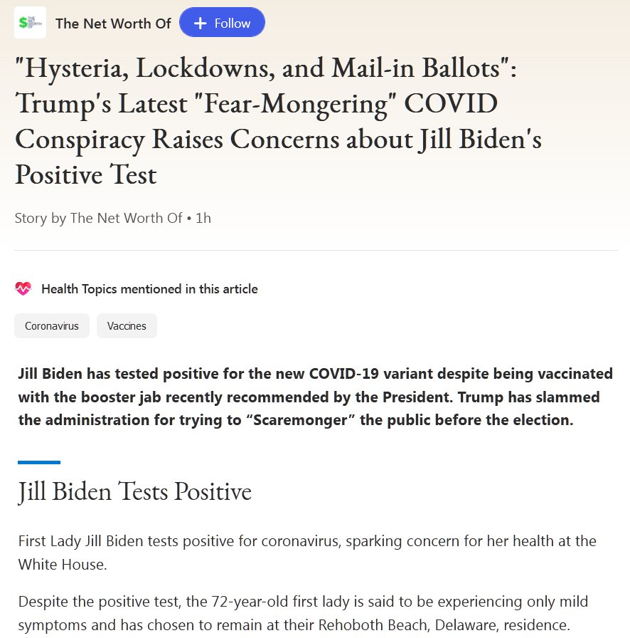 LA CLOACA DESBORDADA (EN INGLÉS) «Histeria, confinamientos y votos por correo»: la última conspiración de Trump para «infundir miedo» contra el COVID genera preocupación por la prueba positiva de Jill Biden