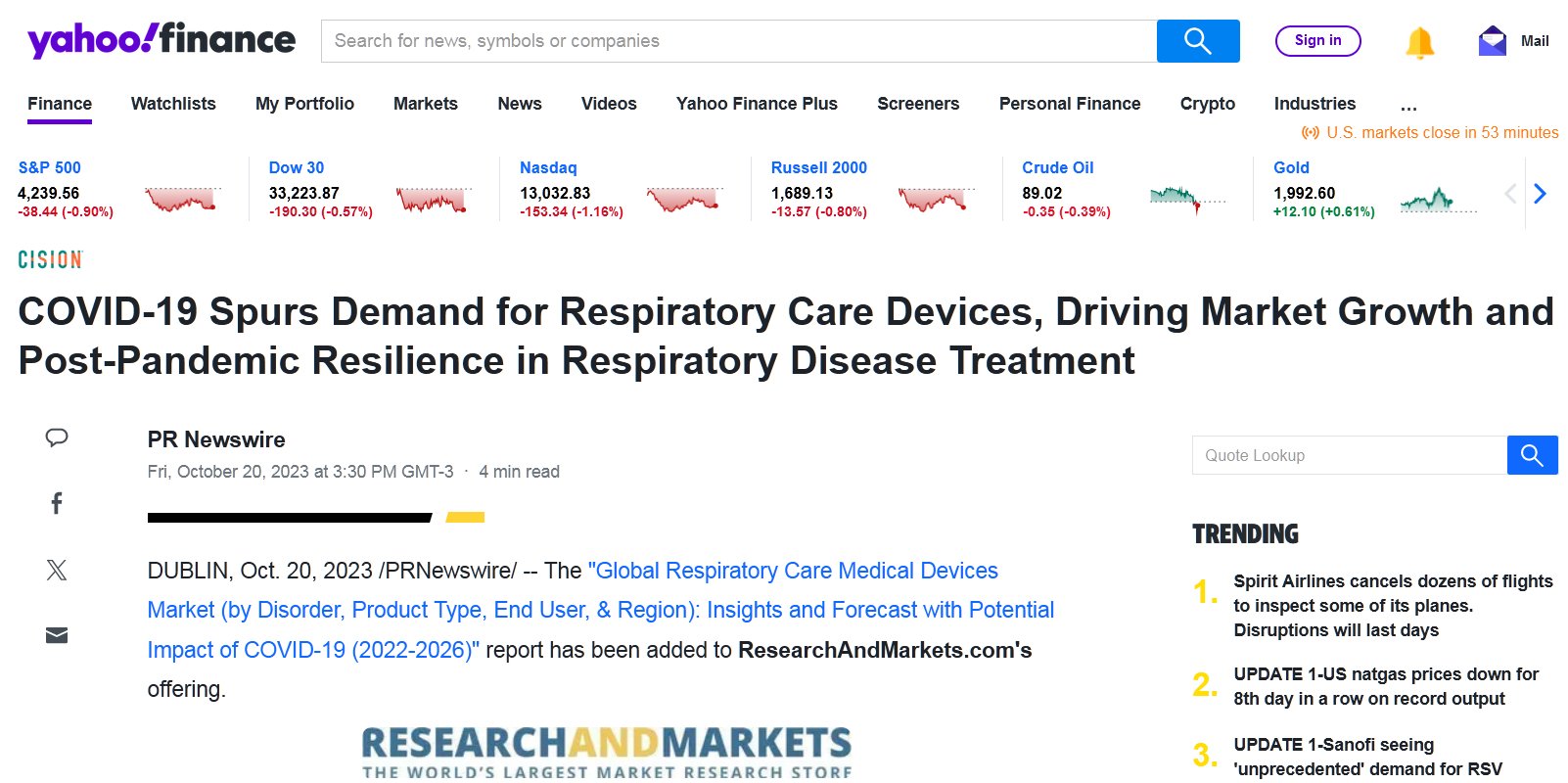 REPANDEMIA=RENEGOCIO (EN INGLÉS) COVID-19 estimula la demanda de dispositivos de atención respiratoria, impulsando el crecimiento del mercado y la resiliencia pospandémica en el tratamiento de enfermedades respiratorias