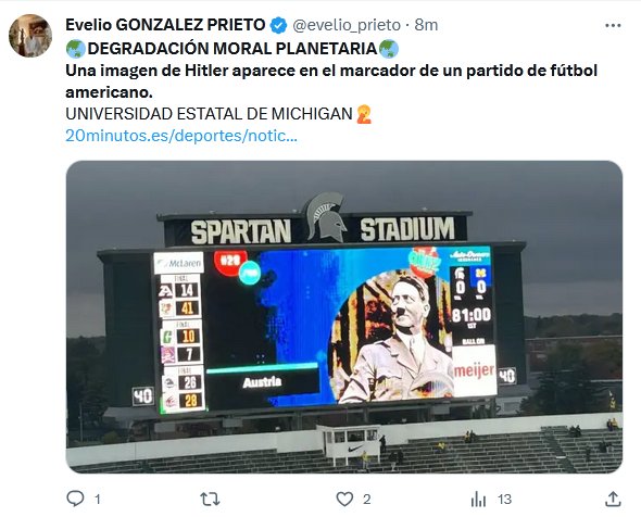 PESTE NEOFARISEÍSMO NAZI! 🌏DEGRADACIÓN MORAL PLANETARIA🌏 Una imagen de Hitler aparece en el marcador de un partido de fútbol americano. UNIVERSIDAD ESTATAL DE MICHIGAN🤦 Posted on octubre 22, 2023 por coronado