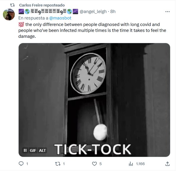 EN INGLÉS 💯 la única diferencia entre las personas diagnosticadas con covid prolongado y las personas que han sido infectadas varias veces es el tiempo que tardan en sentir el daño. Posted on octubre 24, 2023 por coronado