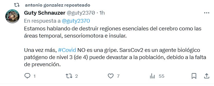 Estamos hablando de destruir regiones esenciales del cerebro como las áreas temporal, sensoriomotora e insular. Una vez más, #Covid NO es una gripe. SarsCov2 es un agente biológico patógeno de nivel 3 (de 4) puede devastar a la población, debido a la falta de prevención.