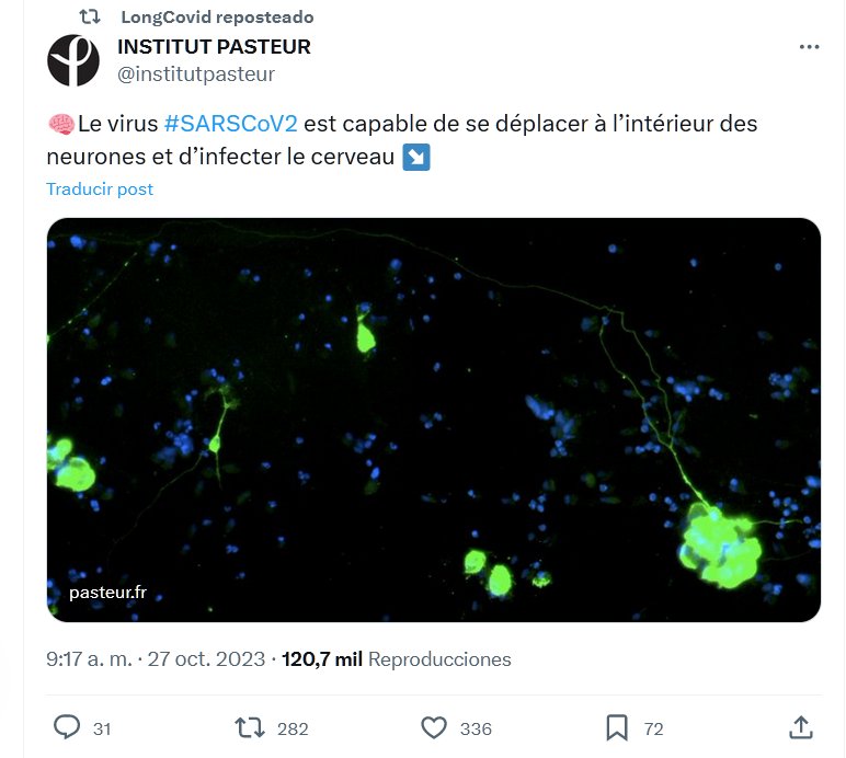 EN FRANCÉS: INSTITUT PASTEUR @institutpasteur 🧠El virus #SARSCoV2 es capaz de moverse dentro de las neuronas e infectar el cerebro ↘️