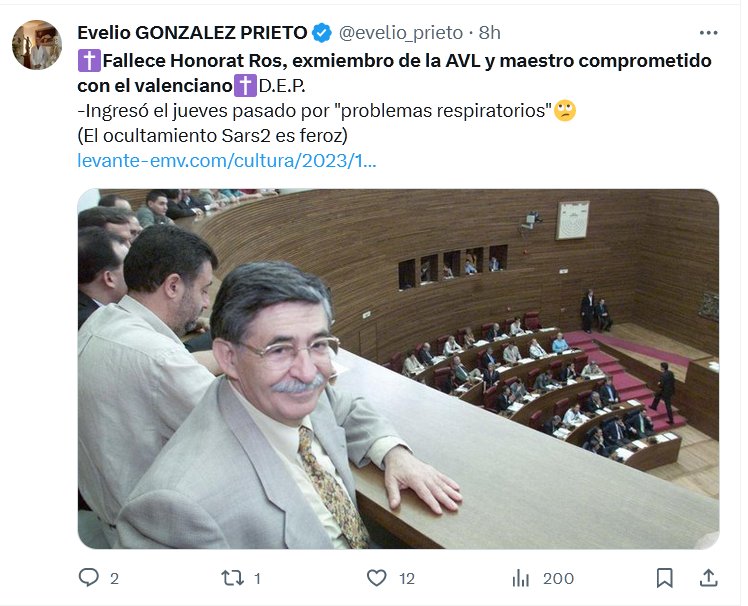 ✝️Fallece Honorat Ros, exmiembro de la AVL y maestro comprometido con el valenciano✝️D.E.P. -Ingresó el jueves pasado por «problemas respiratorios»🙄 (El ocultamiento Sars2 es feroz) Posted on noviembre 2, 2023 por coronado