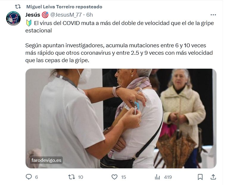 🔰 El virus del COVID muta a más del doble de velocidad que el de la gripe estacional Según apuntan investigadores, acumula mutaciones entre 6 y 10 veces más rápido que otros coronavirus y entre 2.5 y 9 veces con más velocidad que las cepas de la gripe.
