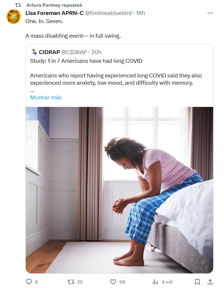 EN INGLÉS Estudio: 1 de cada 7 estadounidenses ha tenido COVID durante mucho tiempo Los estadounidenses que informaron haber experimentado COVID prolongado dijeron que también experimentaron más ansiedad, mal humor y dificultades con la memoria.