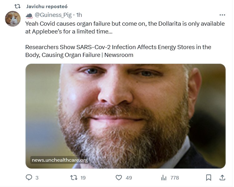 EN INGLÉS Sí, el Covid provoca insuficiencia orgánica, pero vamos, Dollarita solo está disponible en Applebee’s por tiempo limitado… Los investigadores muestran que la infección por SARS-Cov-2 afecta las reservas de energía en el cuerpo y provoca insuficiencia orgánica