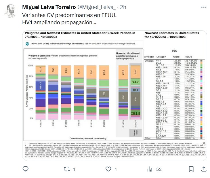 FIN DE PANDEMIA? Variantes COVID predominantes en EEUU. HV.1 ampliando propagación… Posted on noviembre 5, 2023 por coronado