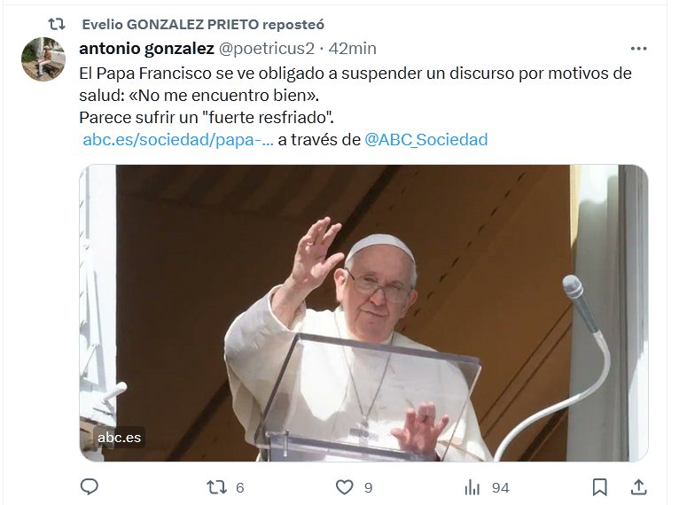 NO PUDO LEERLE A LOS RABINOS MIENTRAS YA HAY 10.000 PALESTINOS MUERTOS El Papa Francisco se ve obligado a suspender un discurso por motivos de salud: «No me encuentro bien». Parece sufrir un «fuerte resfriado»