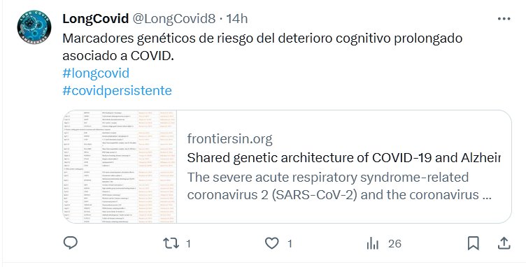 Marcadores genéticos de riesgo del deterioro cognitivo prolongado asociado a COVID. #longcovid #covidpersistente Posted on noviembre 7, 2023 por coronado https://www.frontiersin.org/articles/10.3389/fnagi.2023.1287322/full