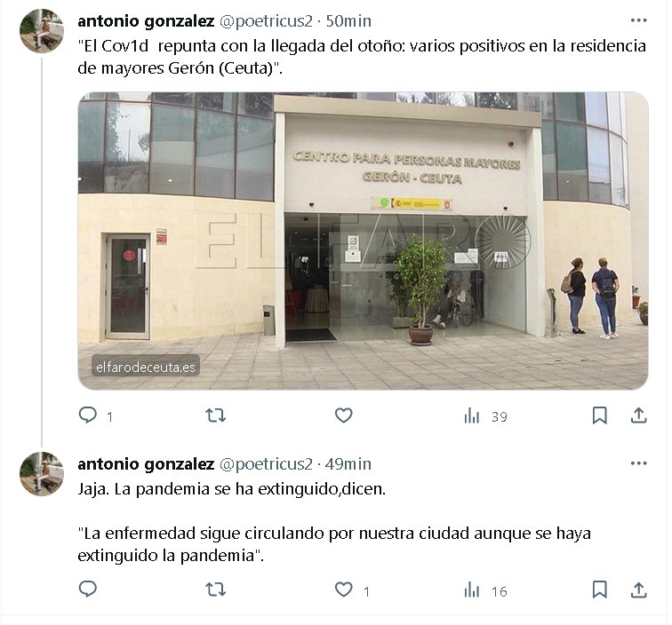 «El Covid repunta con la llegada del otoño: varios positivos en la residencia de mayores Gerón (Ceuta)». Posted on noviembre 8, 2023 por coronado
