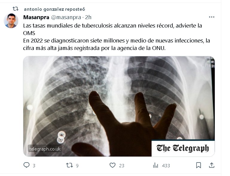 PARAPANDEMIA-SS Las tasas mundiales de tuberculosis alcanzan niveles récord, advierte la OMS En 2022 se diagnosticaron siete millones y medio de nuevas infecciones, la cifra más alta jamás registrada por la agencia de la ONU.