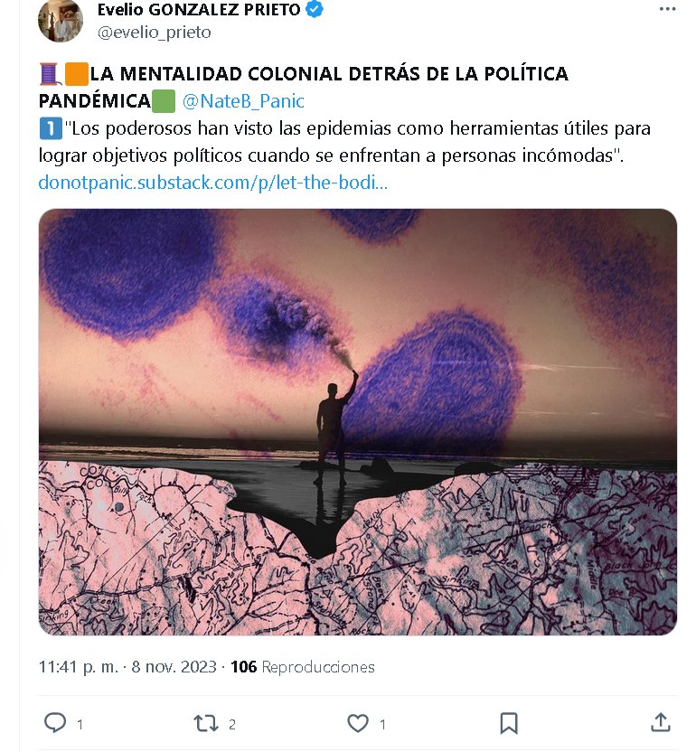 🟧LA MENTALIDAD COLONIAL DETRÁS DE LA POLÍTICA PANDÉMICA🟩 @NateB_Panic 1⃣»Los poderosos han visto las epidemias como herramientas útiles para lograr objetivos políticos cuando se enfrentan a personas incómodas»