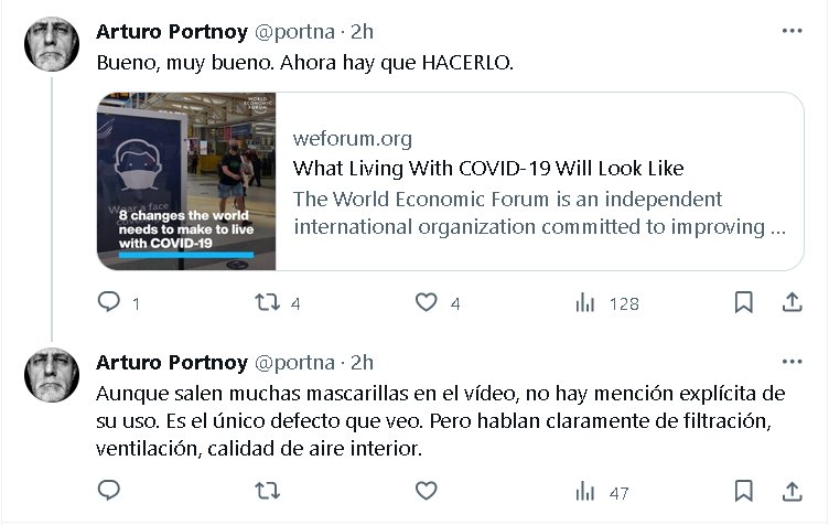 BUEN MENSAJE PERO SIN MENCIONAR MASCARILLA (EN INGLÉS) Posted on noviembre 9, 2023 por coronado https://www.weforum.org/videos/what-living-with-covid-19-will-look-like/
