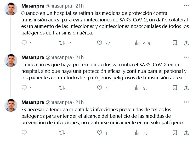 Cuando en un hospital se retiran las medidas de protección contra transmisión aérea para evitar infecciones de SARS-CoV-2, un daño colateral es un aumento de las infecciones y coinfecciones nosocomiales de todos los patógenos de transmisión aérea