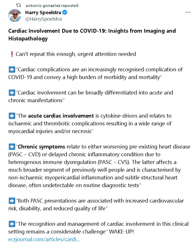 EN INGLÉS Afectación cardíaca debida a COVID-19: conocimientos de imágenes e histopatología ❗No puedo repetir esto lo suficiente, se necesita atención urgente ➡️»Las complicaciones cardíacas son una complicación cada vez más reconocida de la COVID-19 y conllevan una elevada carga de morbilidad y mortalidad»
