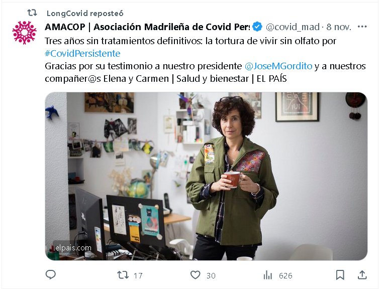 TESTIMONIOS Tres años sin tratamientos definitivos: la tortura de vivir sin olfato por #CovidPersistente Posted on noviembre 12, 2023 por coronado