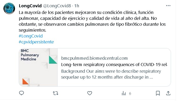 La mayoría de los pacientes mejoraron su condición clínica, función pulmonar, capacidad de ejercicio y calidad de vida al año del alta. No obstante, se observaron cambios pulmonares de tipo fibrótico durante los seguimientos. #LongCovid #covidpersistente