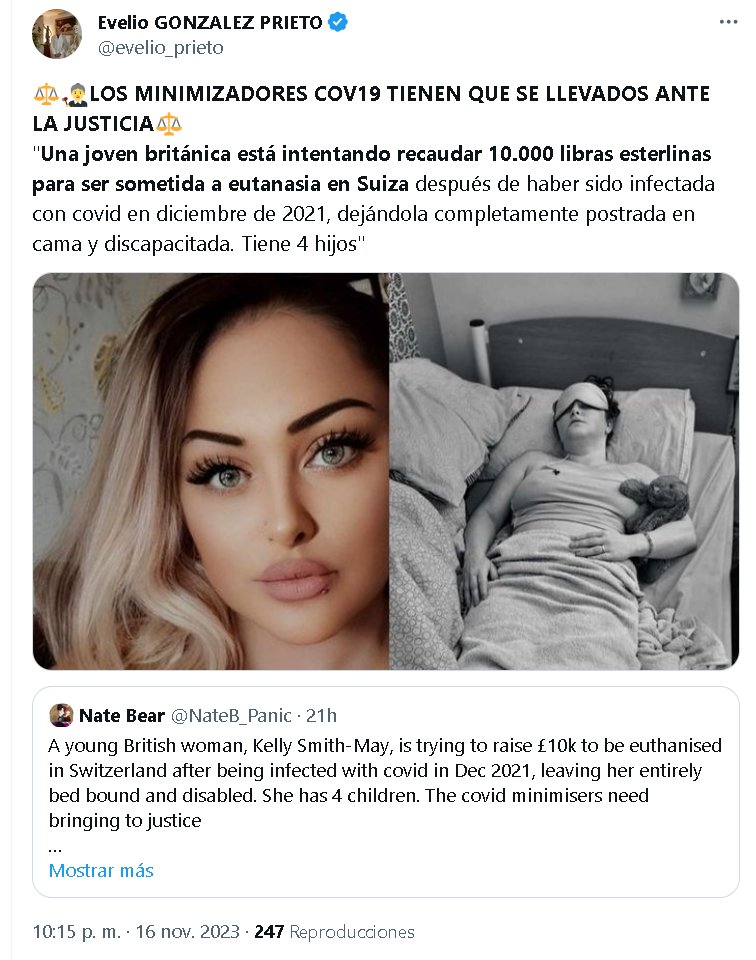 ⚖️👩⚖️LOS MINIMIZADORES COV19 TIENEN QUE SER LLEVADOS ANTE LA JUSTICIA⚖️ «Una joven británica está intentando recaudar 10.000 libras esterlinas para ser sometida a eutanasia en Suiza después de haber sido infectada con covid en diciembre de 2021, dejándola completamente postrada en cama y discapacitada. Tiene 4 hijos»
