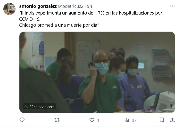 21 DE NOVIEMBRE DE 2023 «Illinois experimenta un aumento del 17% en las hospitalizaciones por COVID-19. Chicago promedia una muerte por día» Posted on noviembre 21, 2023 por coronado https://www.fox32chicago.com/news/illinois-covid-19-hospitalizations-chicago-one-death-per-day