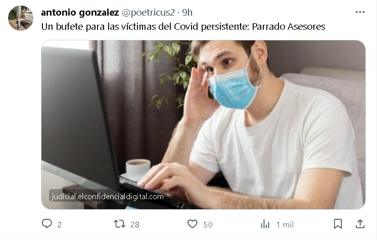 JUSTICIA CONTRA EL AVASALLAMIENTO Un bufete para las víctimas del Covid persistente: Parrado Asesores Posted on noviembre 21, 2023 por coronado https://judicial.elconfidencialdigital.com/articulo/punos_y_punetas/bufete-victimas-covid-persistente-parrado-asesores/20231121000000016403.html&utm_source=social&utm_medium=twitter&utm_campaign=share_button