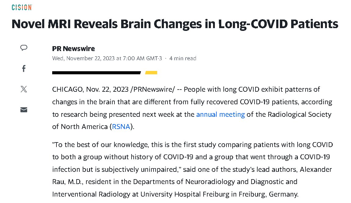 «ES LEVE» (EN INGLÉS) Una nueva resonancia magnética revela cambios cerebrales en pacientes con COVID prolongado Posted on noviembre 22, 2023 por coronado https://finance.yahoo.com/news/novel-mri-reveals-brain-changes-100000614.html