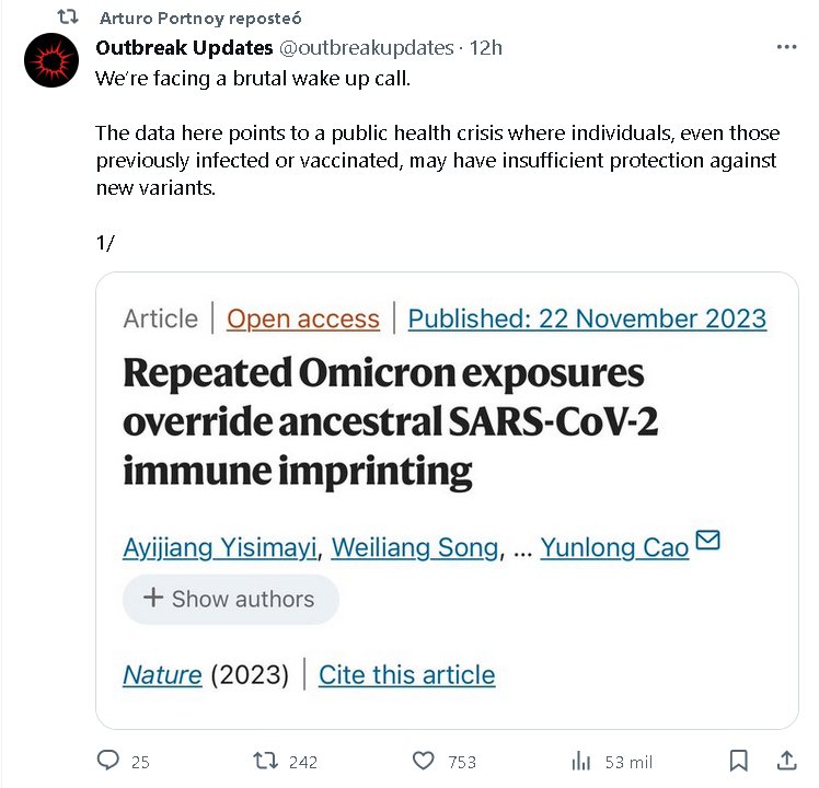 Nos enfrentamos a una brutal llamada de atención. Los datos aquí apuntan a una crisis de salud pública en la que las personas, incluso aquellas previamente infectadas o vacunadas, pueden tener una protección insuficiente contra nuevas variantes.
