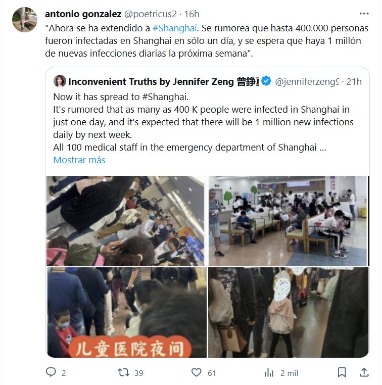 BIOWAR CONTRA CHINA? «Ahora se ha extendido a #Shanghai. Se rumorea que hasta 400.000 personas fueron infectadas en Shanghai en sólo un día, y se espera que haya 1 millón de nuevas infecciones diarias la próxima semana».