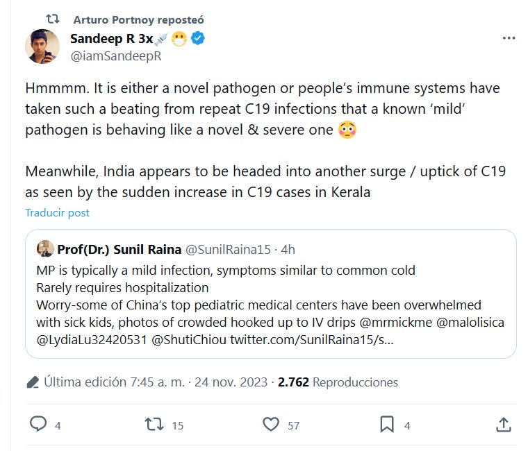 GENTE QUE SÍ PIENSA (EN INGLÉS) Mmmmm. O es un patógeno nuevo o el sistema inmunológico de las personas ha recibido tal paliza por las infecciones repetidas por C19 que un patógeno «leve» conocido se está comportando como uno nuevo y grave 😳