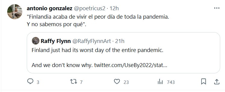 «EL PAÍS MÁS FELIZ DEL MUNDO», «FIN DE PANDEMIA», «ES LEVE», «ES UNA GRIPECITA» Y SIGUEN LAS ZONCERAS «Finlandia acaba de vivir el peor día de toda la pandemia. Y no sabemos por qué» Posted on noviembre 25, 2023 por coronado https://twitter.com/RaffyFlynnArt/status/1728120122907263302